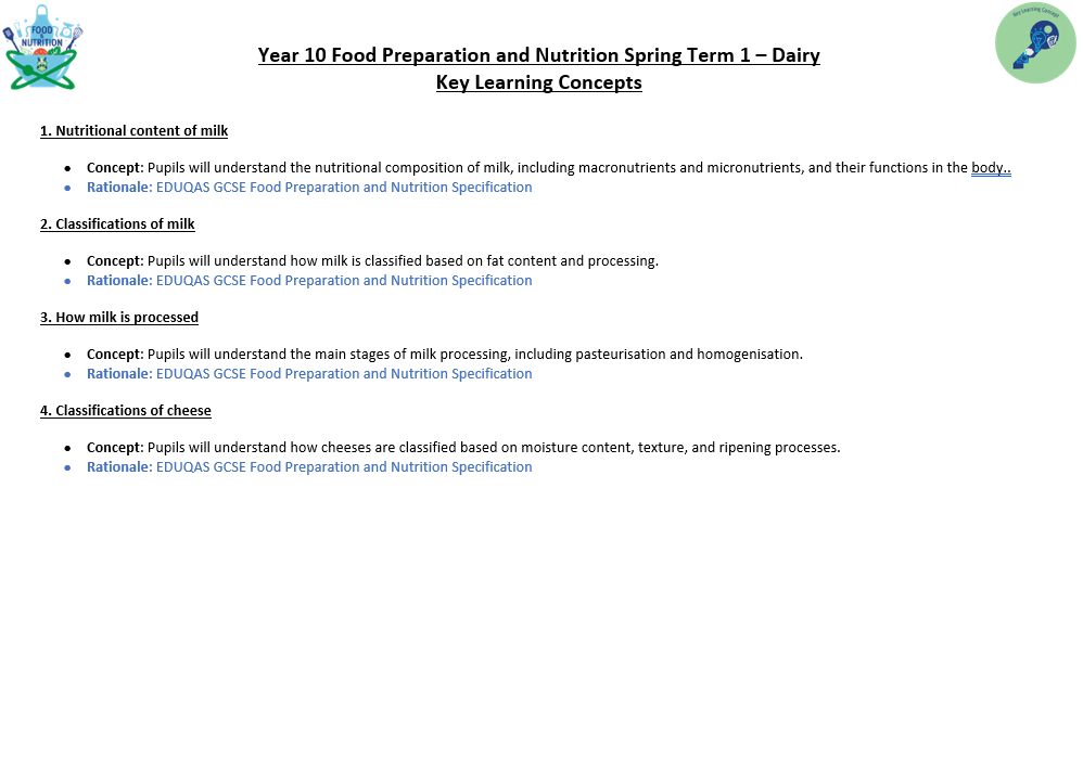 The KS3 Food curriculum takes account of the National Curriculum, the core competencies, and the need to prepare students for the GCSE Food Preparation and Nutrition specification.