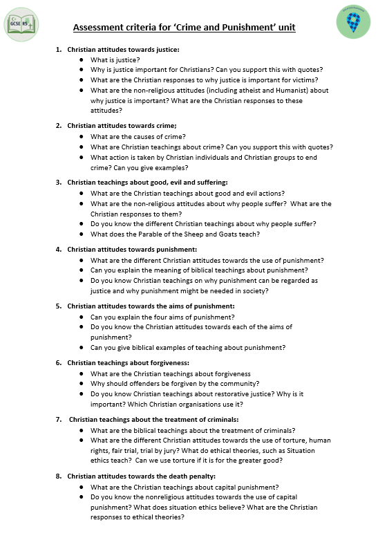 Year 10 GCSE RS Units of Study: Christian beliefs, Crime and punishment, Muslim beliefs, Marriage and Family